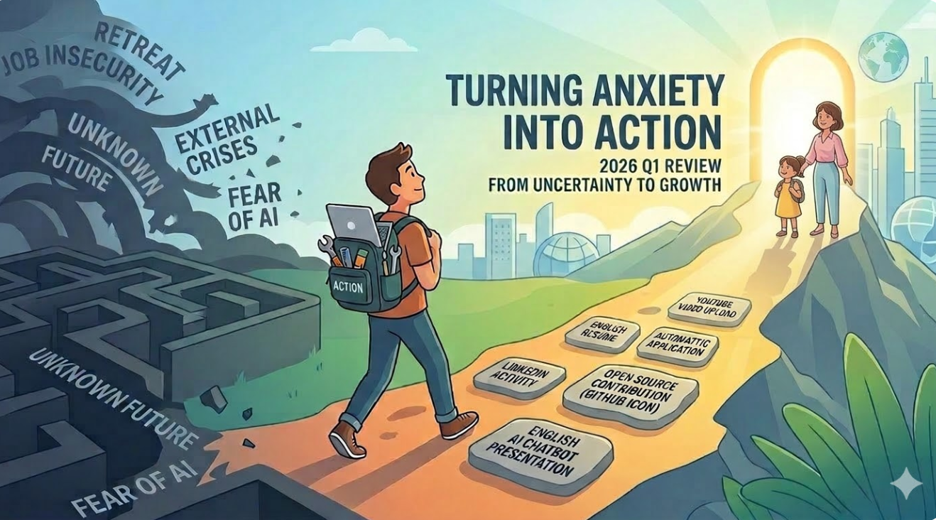 작년 한 해는 AI의 급격한 발전으로 인한 고용 안정성 문제로 참 힘든 시간을 보냈습니다. 불안감이 엄습해 올 때마다, 하반기부터는 그 불안을 잠재우기 위해 머리로만 고민하는 대신 무작정 실행에 옮기기 시작했습니다.